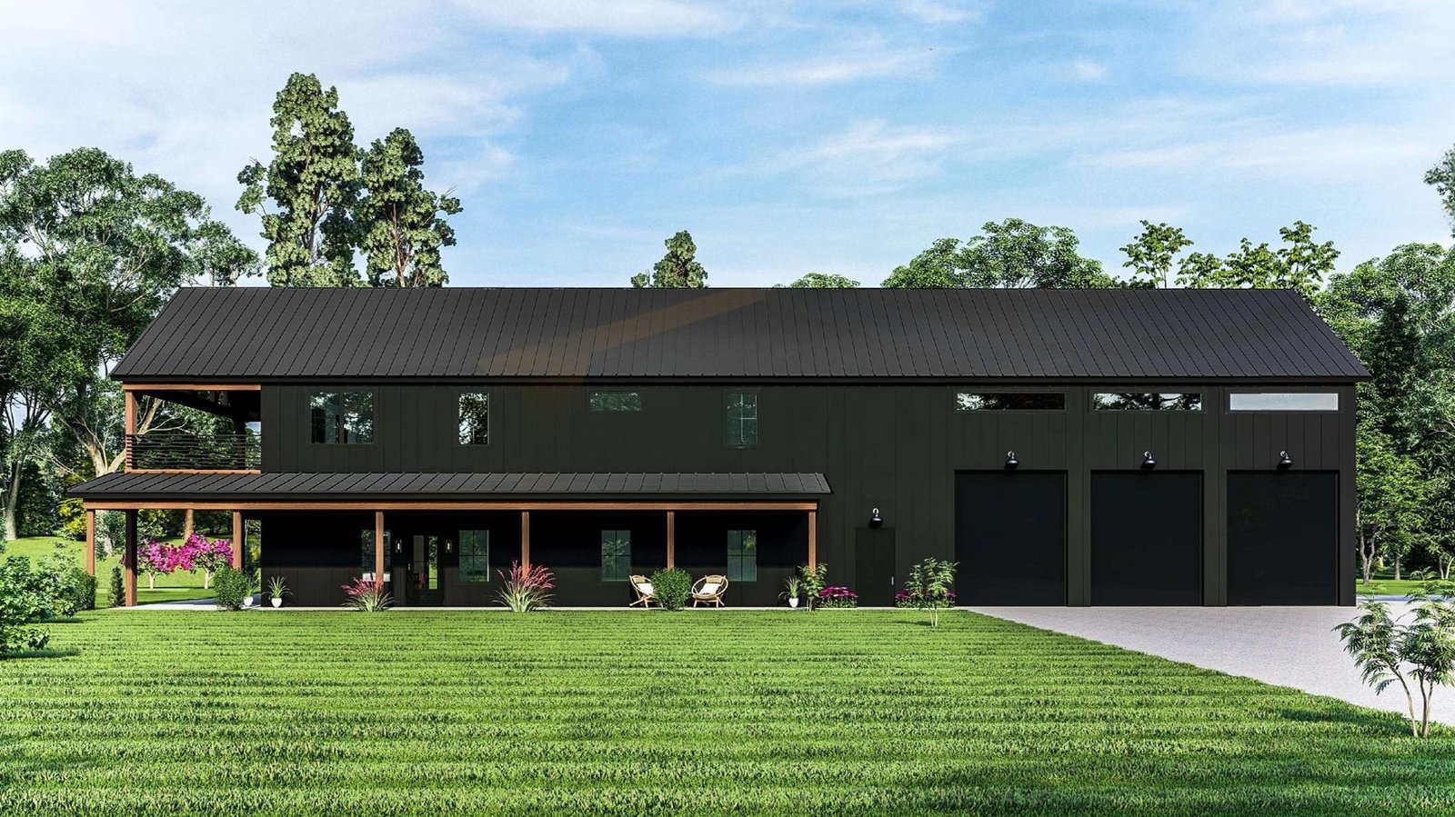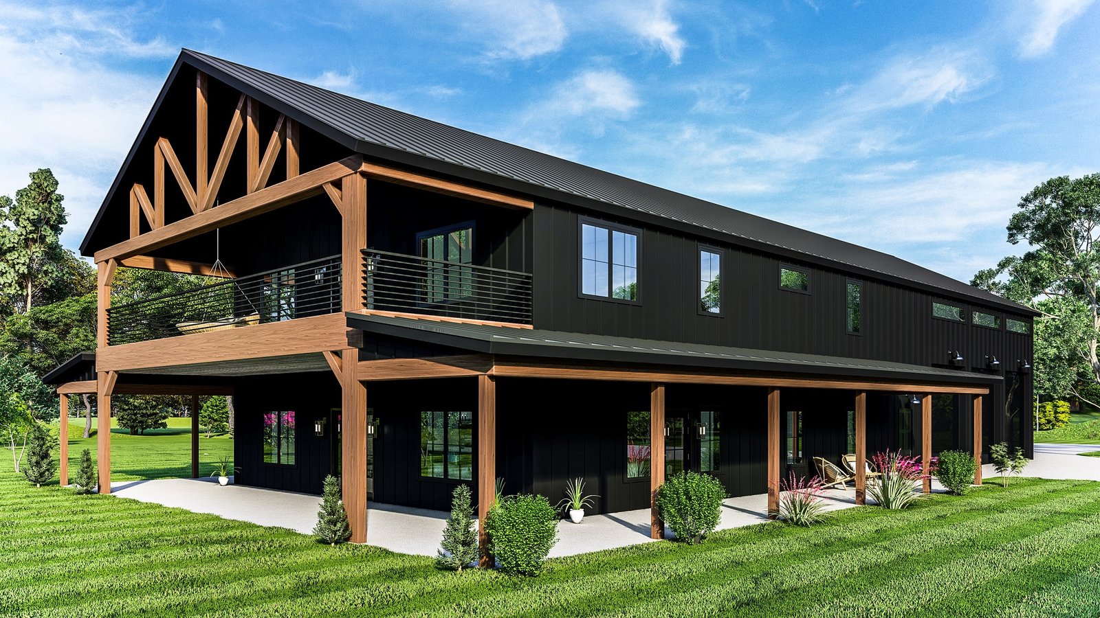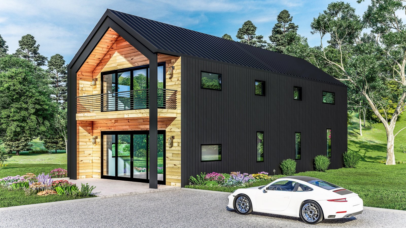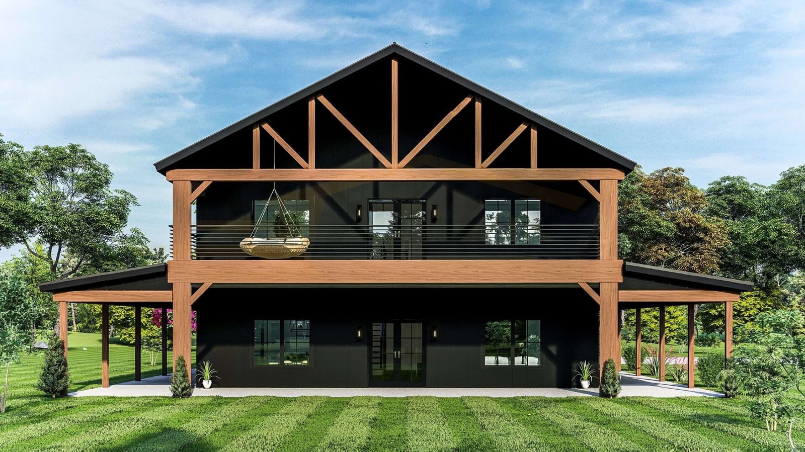 Elegant, efficient 2-story barndominium perfect for guest houses or weekend getaways.