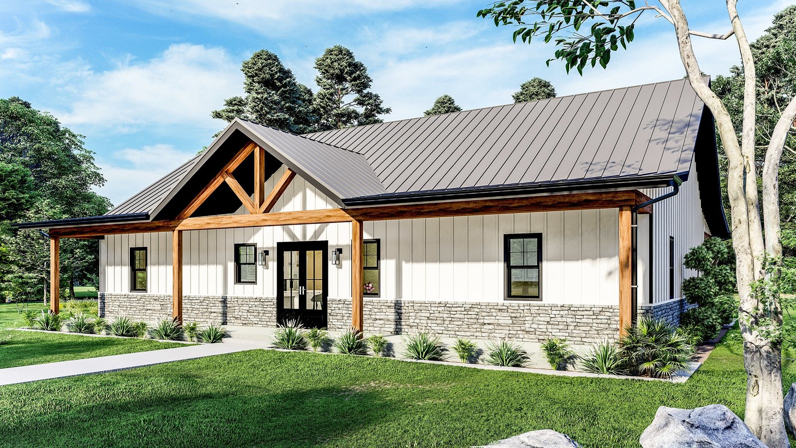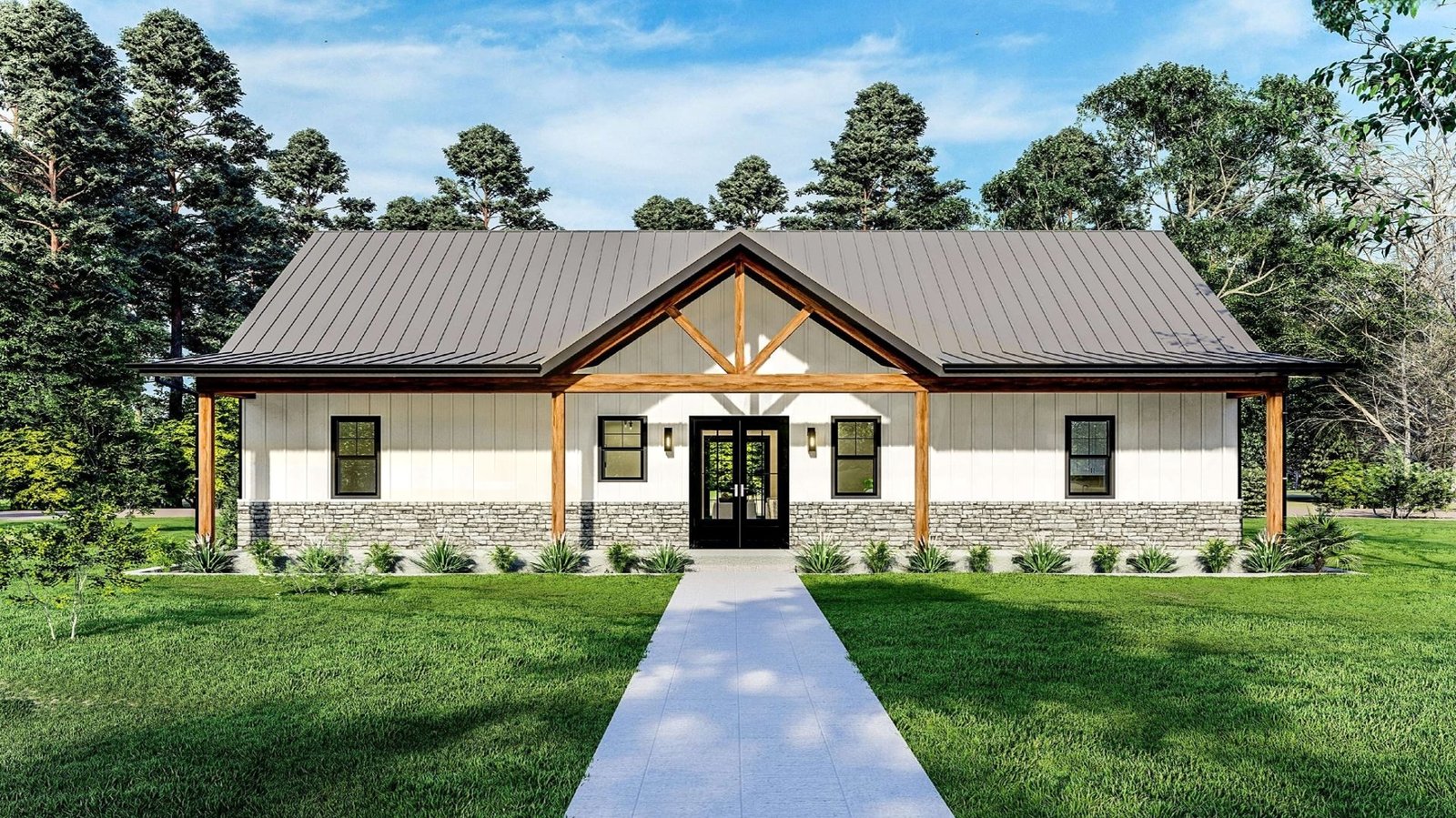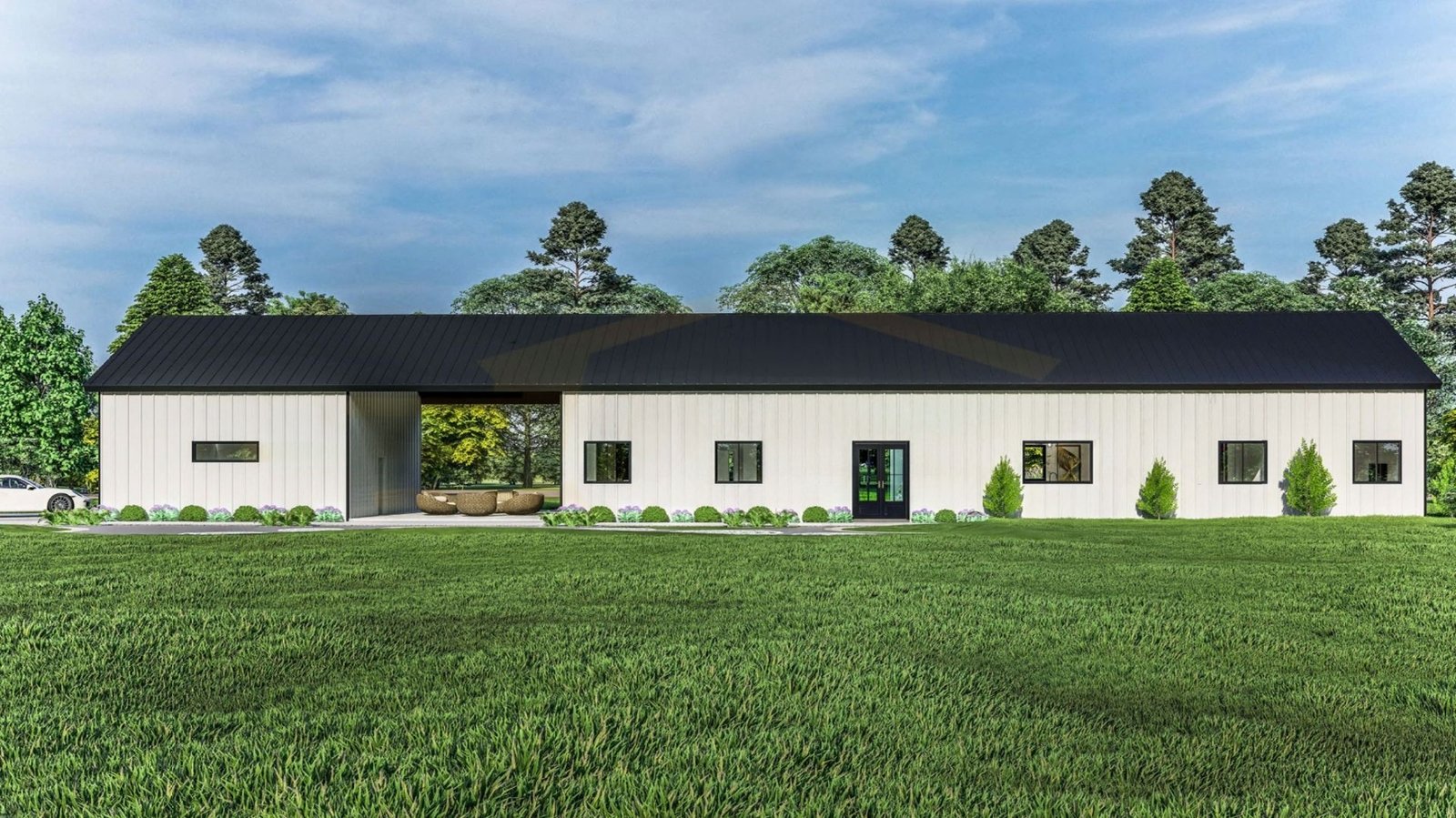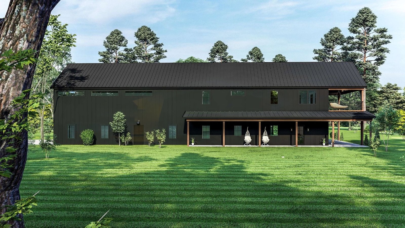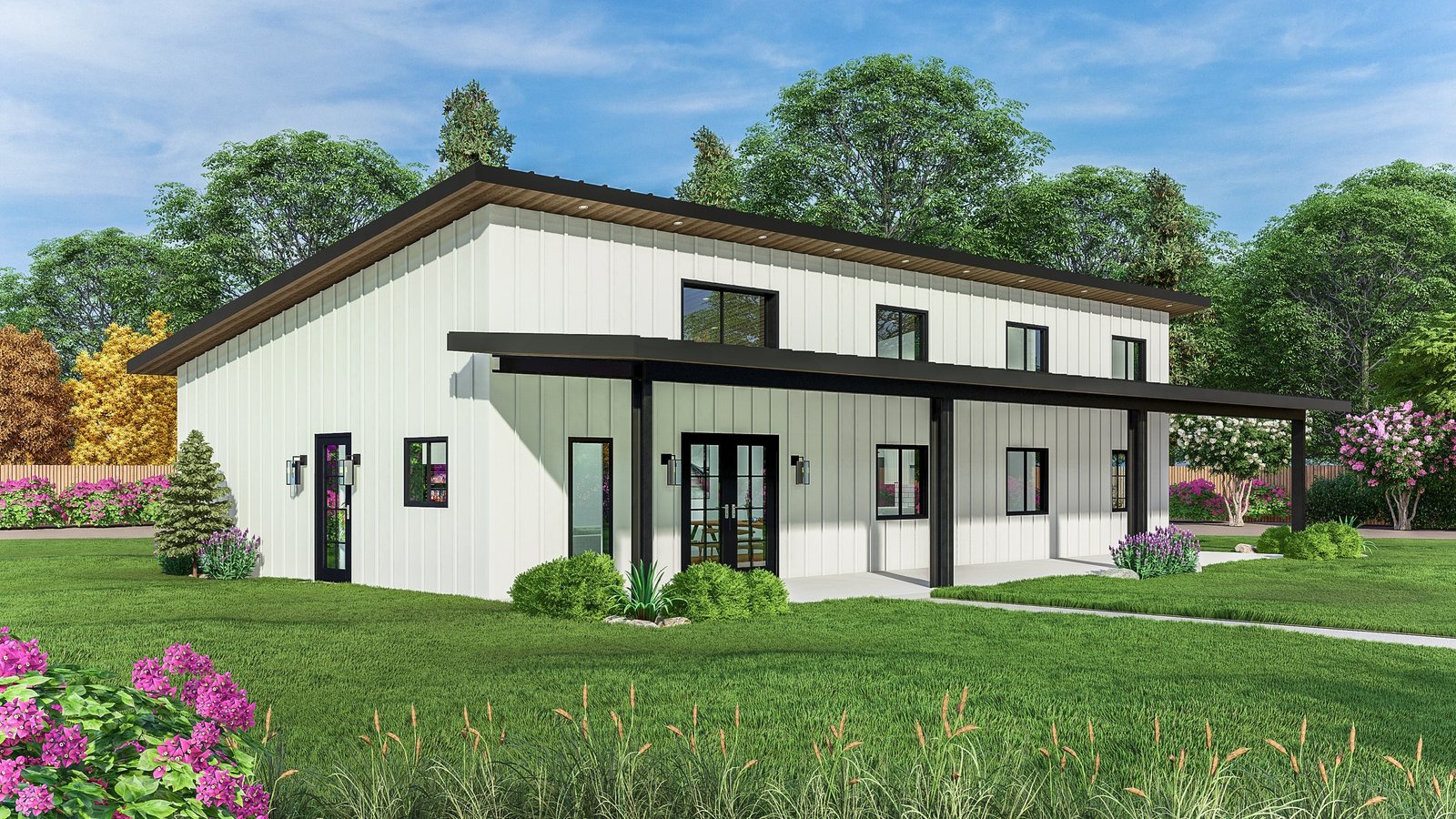 Elegant, efficient 2-story barndominium perfect for guest houses or weekend getaways.