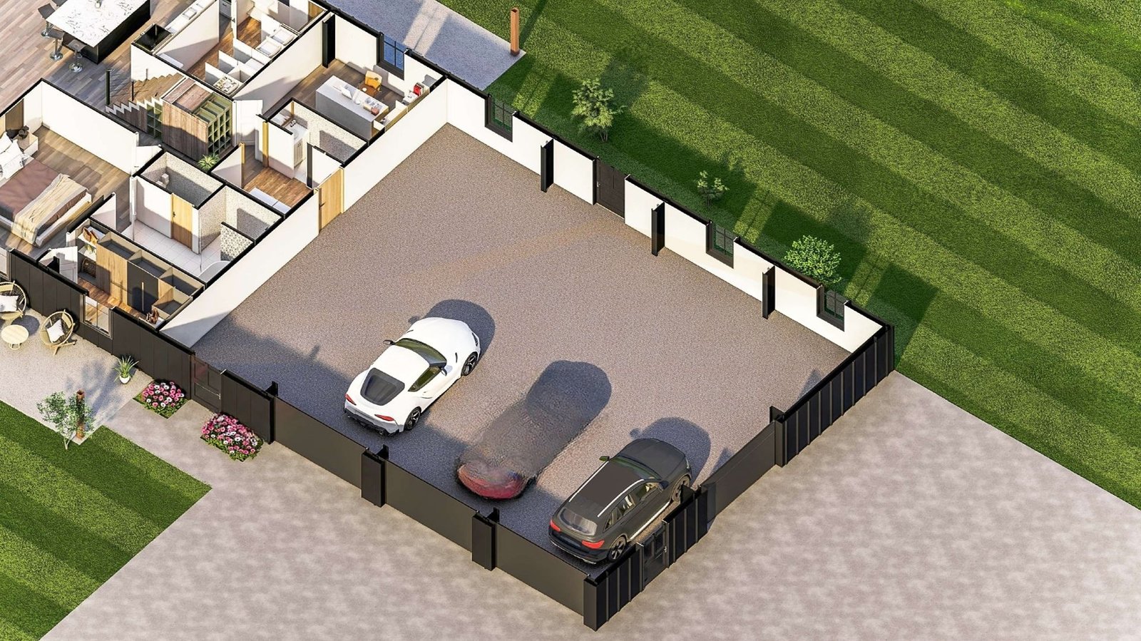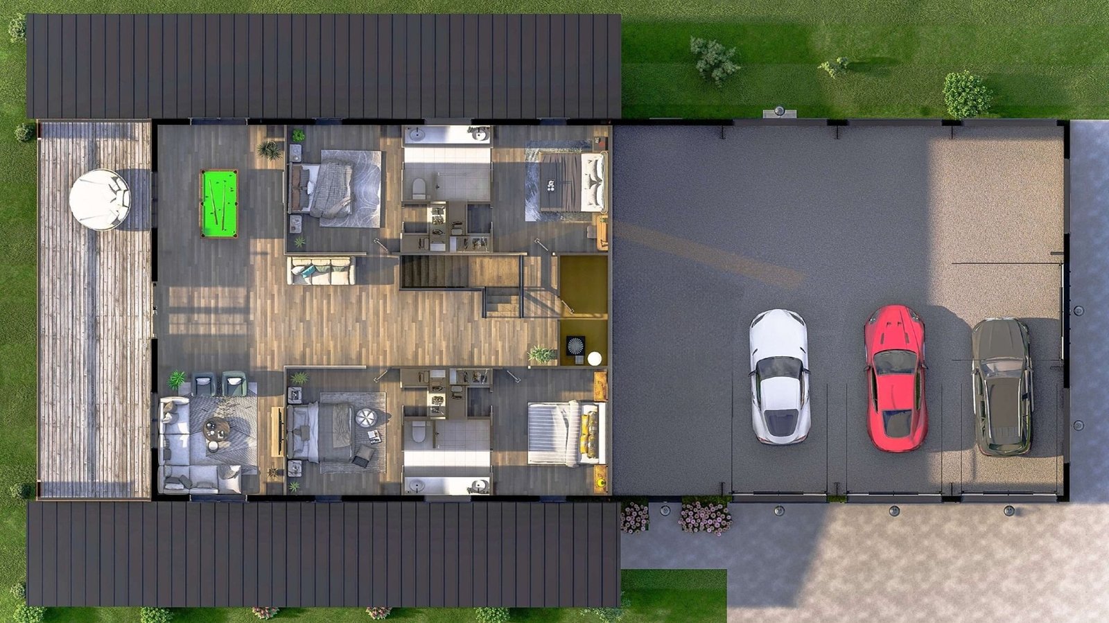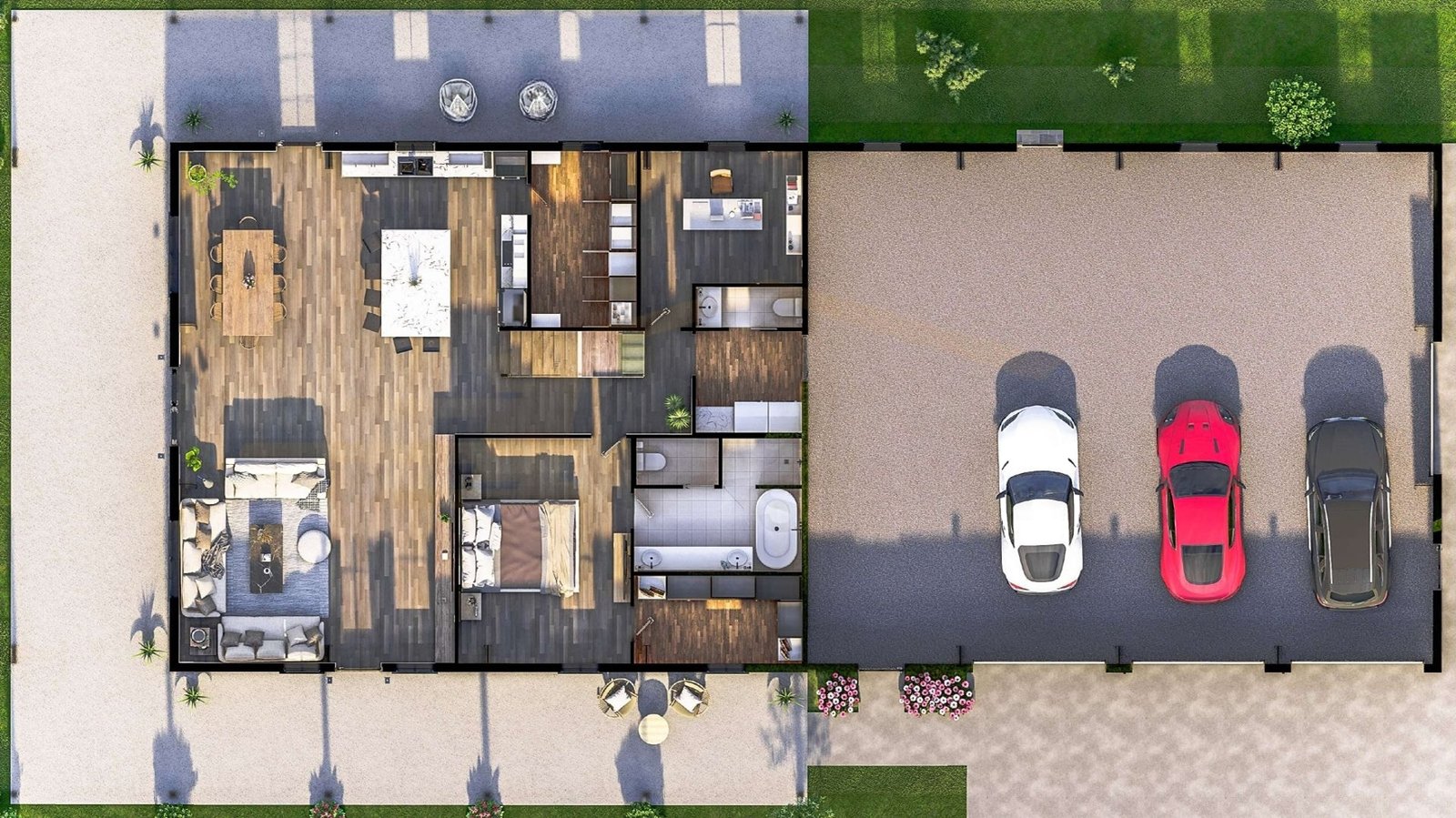 Massive integrated shop and residential wing for the ultimate utility-focused lifestyle.